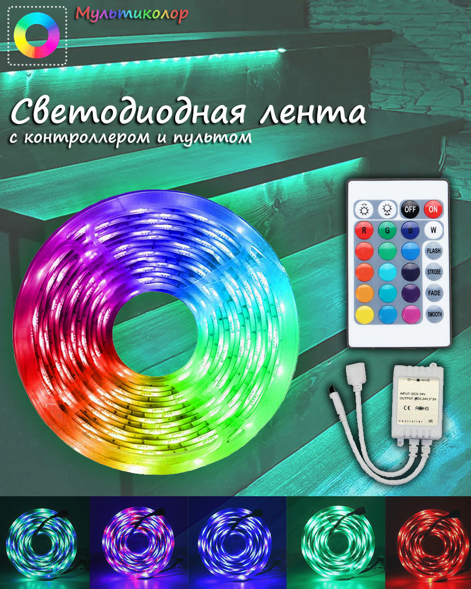 Купить -47% . 240,50 ₴ 455 . . . Светодиодная РГБ ЛЕД лента с пультом LED Strip 5050, диодная RGB + контроллер и пульт (ST) . . . Светодиодная лента Smd 3528 Rgb Led 5 м с пультом и блоком питания SKL11-276450 +380 . . .