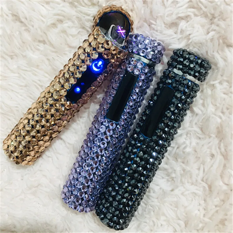 Купить Rhinestone Touch Screen USB Lighter Diamond Luxury Rechargeable Cigarette Lighter Windproof Portable Silent High-end Ladies Gift за 400рублей