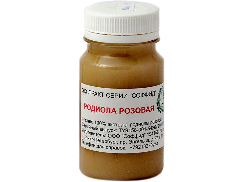 Экстракт родиолы розовой: сырье настаивают на 40% спирте или водке в соотношении 1:1 . Принимают по 10 капель 2-3 раза в день за 30 минут до еды в течение 10-20 дней .