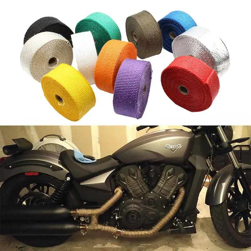 Купить Roll Fiberglass Heat Shield Motorcycle Exhaust Thermal Tape Header Pipe Heat Wrap Tape Thermal Protection with Stainless Ties за 350рублей