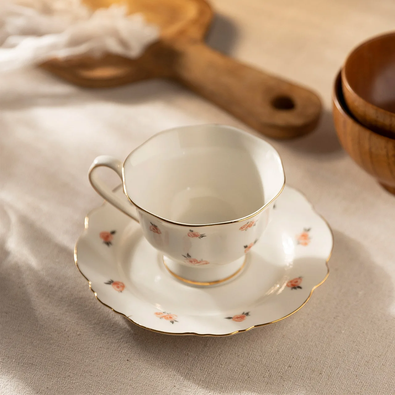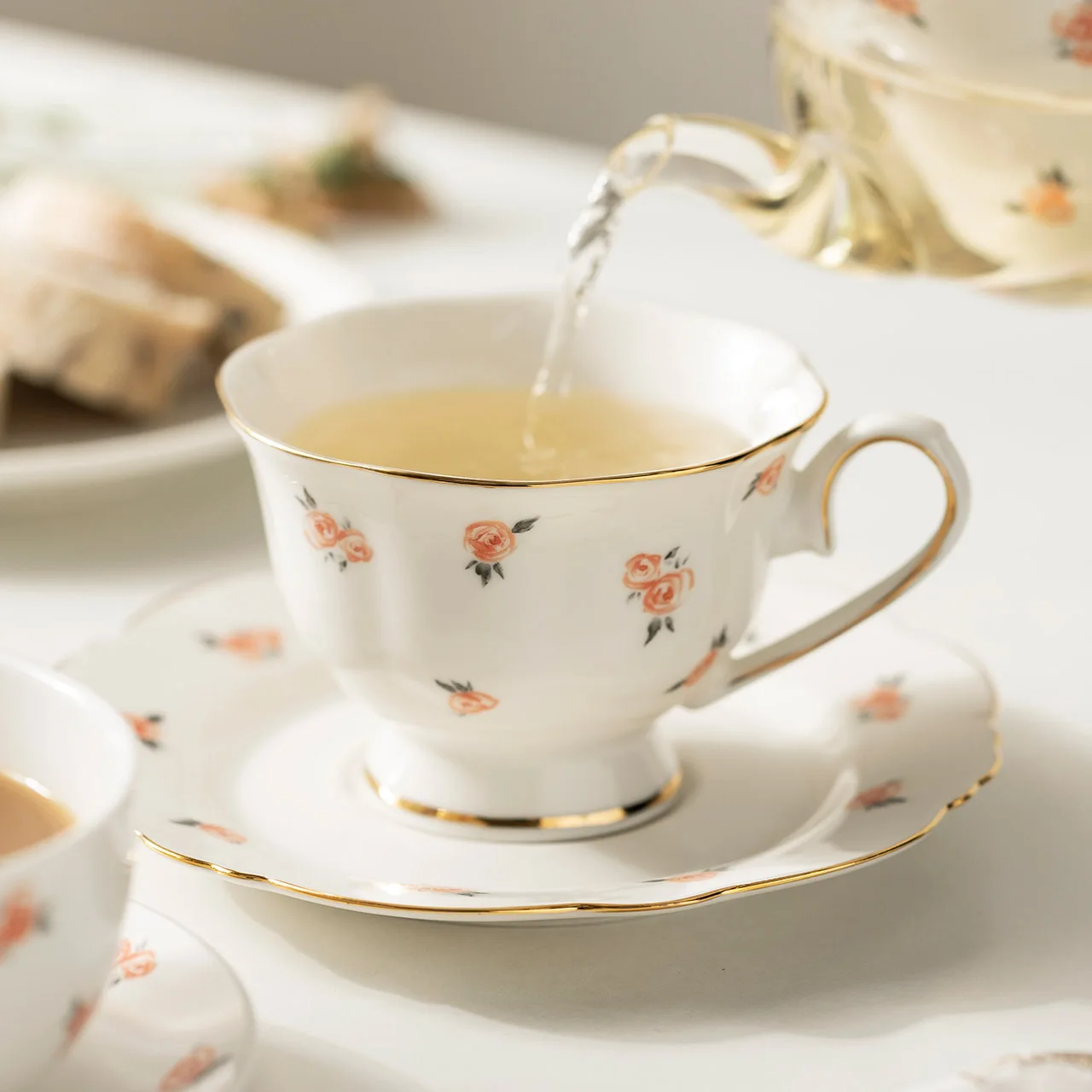 Купить Rose Flower 600ml European StyleTeacup Set Ceramic Coffee Mug with Dessert Tray Home Office Phnom Penh Cup and Saucer за 750рублей