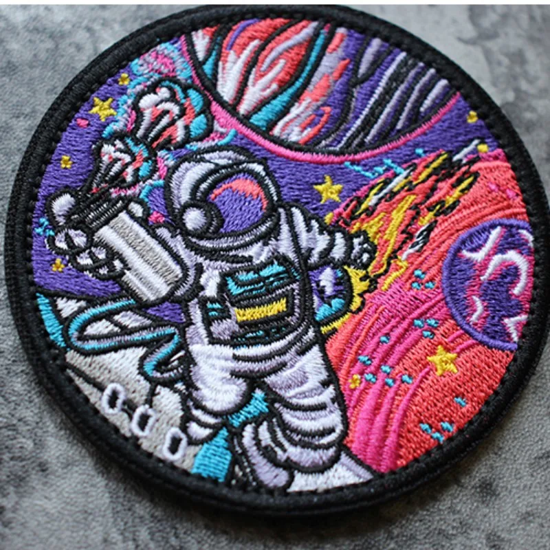 Купить Round Colorful Space Embroidery Patch Astronaut Full Embroidery Tactical Badge Creative Pack Decal Hook and Loop Patch за 550рублей