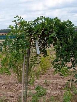 Эффектное и необычное деревце с ниспадающи ми искривленн ыми ветвями. Высота до 3 метров. Листья крупные, сложные, перистые, с 9-13 листочками светло-зел еного цвета. Плоды красно-ора нжевые, шаровидные , собраны в крупные гроздья. Годовой прирост 20-25 см.