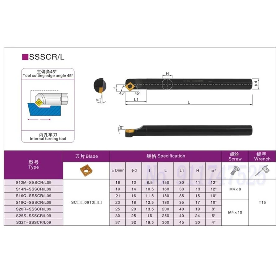 Купить S12M-SSSCR09 45 Degrees Lathe Turning Tools S16Q-SSSCR09 Internal Turning Tools S20R-SSSCR09 S25S-SSSCR09 CNC Lathe Tools Holder за 300рублей