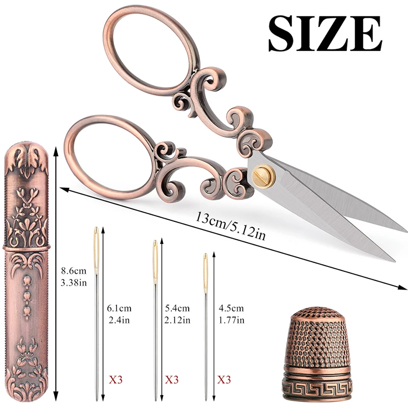 Купить SHWAKK Tailor Scissors Kit Vintage European Style Embroidery Scissors Sewing Needlework Thread Scissors with Thimble Needles за 750рублей