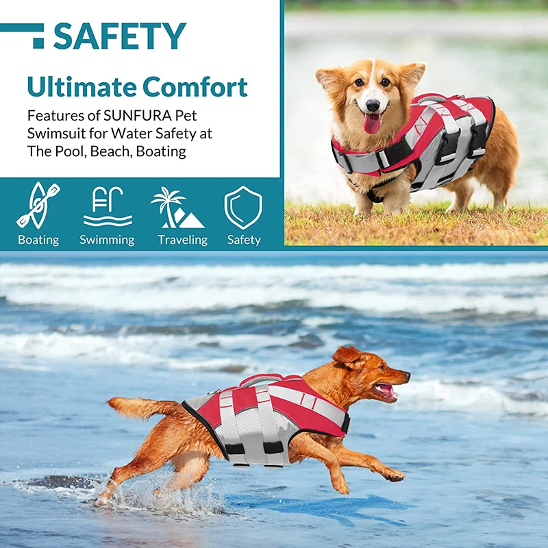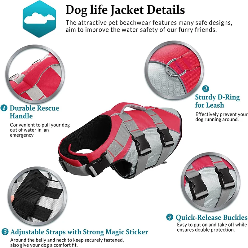Купить Safety Dog Life Jacket Summer Pet Swimsuit Reflective Dog Float Vest with Rescue Handle Adjustable for Small Large Dogs Dropship за 600рублей