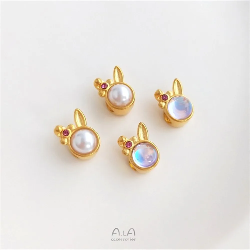 Купить Sand gold inlaid imitation pearl moonstone rabbit large hole septa bead hand beaded bracelet string ornaments за 100рублей