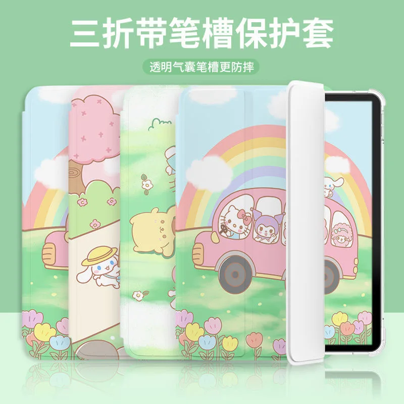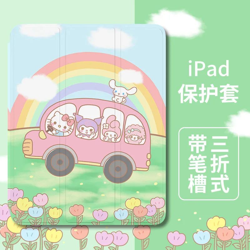 Купить Sanrio Green Hello Kitty iPad Air 2021 Case Air 4 Silicone Protective Case For iPad Pro Mini 10.2 inch 8th Anti-drop Soft Cover за 800рублей