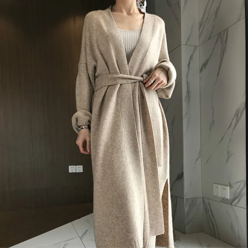 Купить Sashes Open Stitch Batwing Sleeve Knitted Cardigans Coats 2021 Women Autumn Winter Long Wool Sweaters Female Split Hem Jackets за 1700рублей