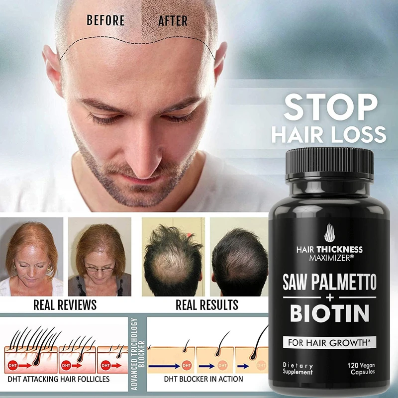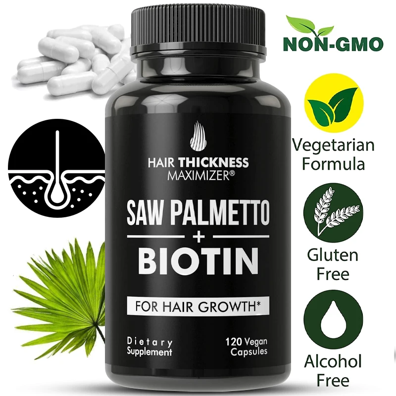 Купить Saw Palmetto + Biotin Advanced 2-in-1 Combination for Hair Growth. Vegetarian Capsule Supplement with Saw Palmetto Extract за 200рублей