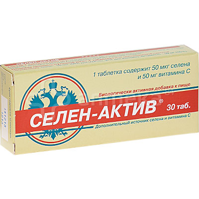 Инструкция по применению СЕЛЕН-АКТИВ Состав и форма выпуска 1 таблетка содержит 50 мкг селена и 50 мг витамина С по 30, 60 или 180 табл . в упаковке . Свойства Селен-актив обеспечивает оптимальную и постоянную антиоксидантную . . .