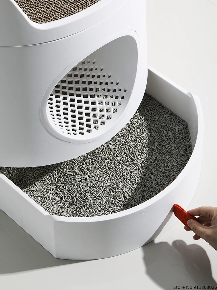 Купить Semi Enclosed Cat Litter Box with Drawer Splash Proof Deodorant Cat Castle Litter Box Kitten Toilet with Cats Scratching Board за 7750рублей