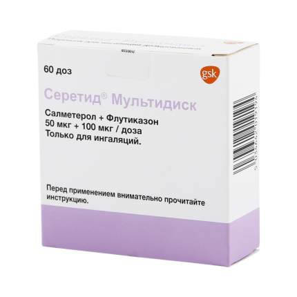 Купить СЕРЕТИД МУЛЬТИДИСК 50МКГ+100МКГ/ДОЗА 60ДОЗ ПОР Д/ИНГ по цене 1137 руб . в интернет аптеке в Рыбном, всегда в наличии, инструкция по применению СЕРЕТИД МУЛЬТИДИСК 50МКГ+100МКГ/ДОЗА 60ДОЗ ПОР Д/ИНГ на Apteka .ru .