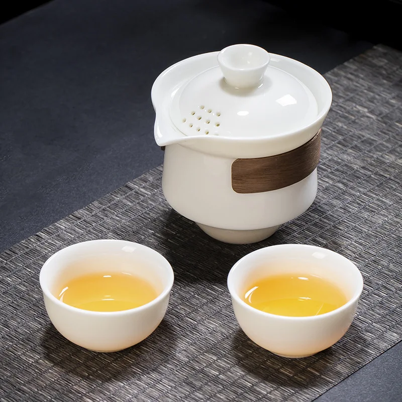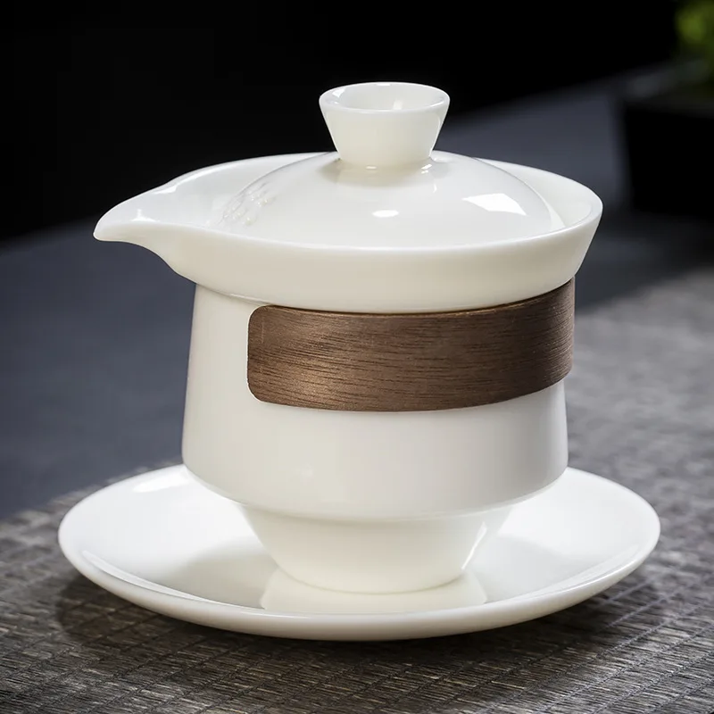Купить Sheep Fat Jade Scald Proof Ceramic Gaiwan TeaTureen Heat Resistant Sancai Cover Bowl Tea Bowl Self Filtering Teapot with Cover за 1100рублей