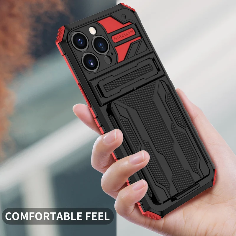 Купить Shockproof Card Slot Phone Case For iPhone 7Plus 8Plus XS Max XR Anti-Fall Bracket Protective Cover For iPhone 11 12 13Pro Max за 200рублей
