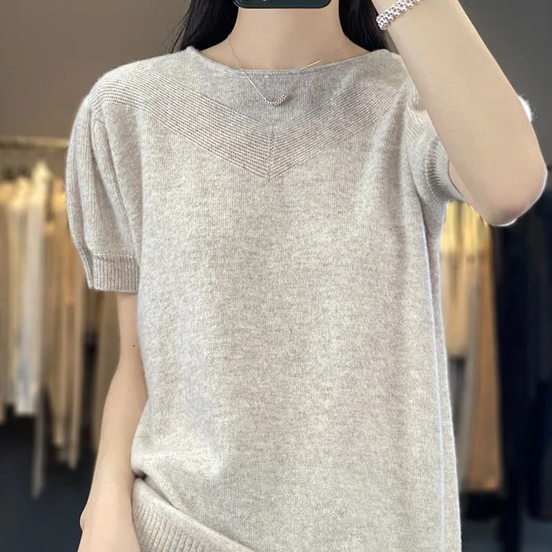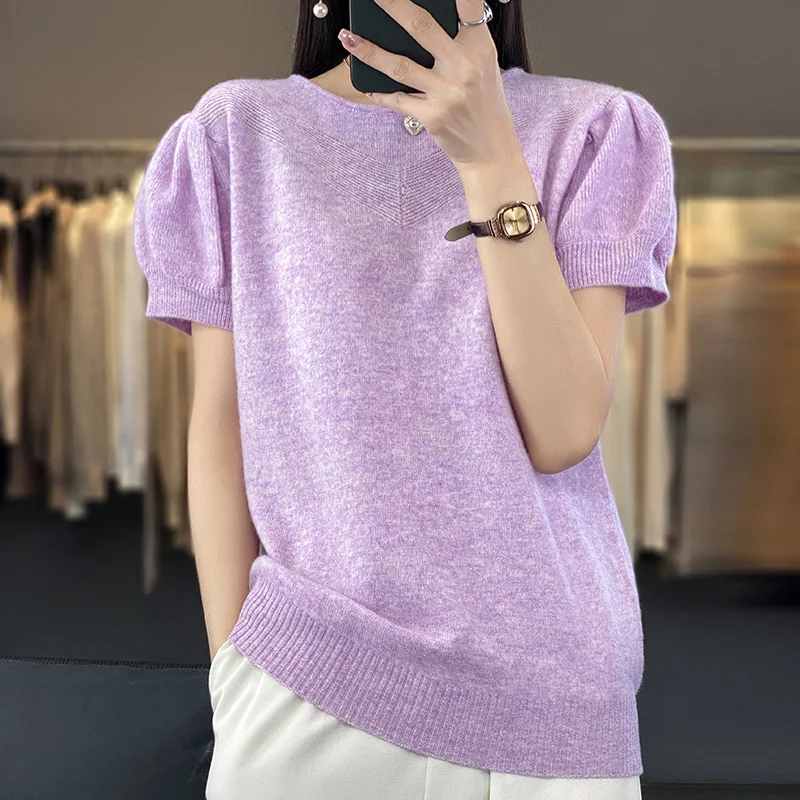 Купить Short Sleeve Cashmere Sweater Women's Thin Round Neck Pullover Spring Summer Loose Half-sleeve Solid Knitted Wool Bottom Top за 3350рублей