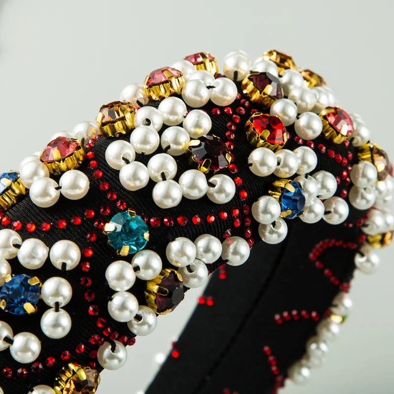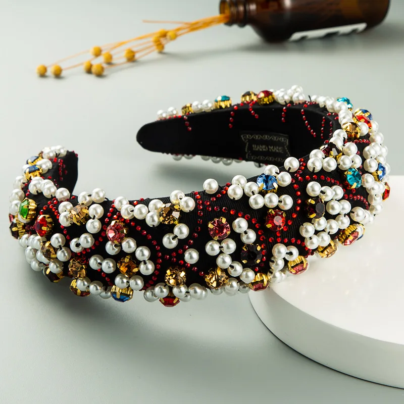 Купить Silanda Fashion Hair Band Elegant Pearl Rhinestone Setted Thick Sponge Headband Ins Trendy Hand-made Heavy Craft Hair Ornaments за 700рублей