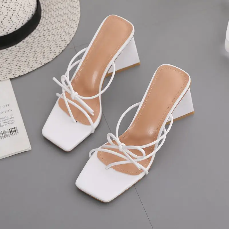 Купить Simple Bow Outdoor Women Slippers Triangle Heel Size 42 Flip Flops Clip Toes Square Head Solid Color Summer Slides Shoes Slip-On за 1600рублей