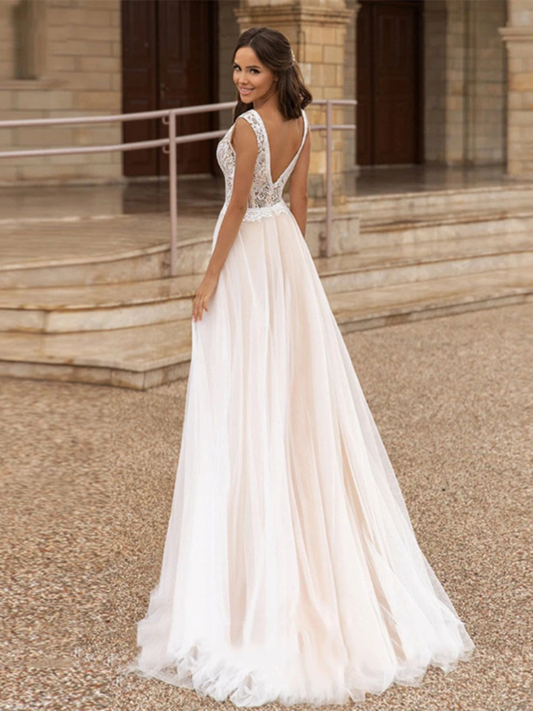 Купить Simple Elegant V-Neck Wedding Dress 2021 Chiffon Sleeveless Backless Sweep Train Custom Made Sashes Luxury Bride Gowns Cheap за 4800рублей
