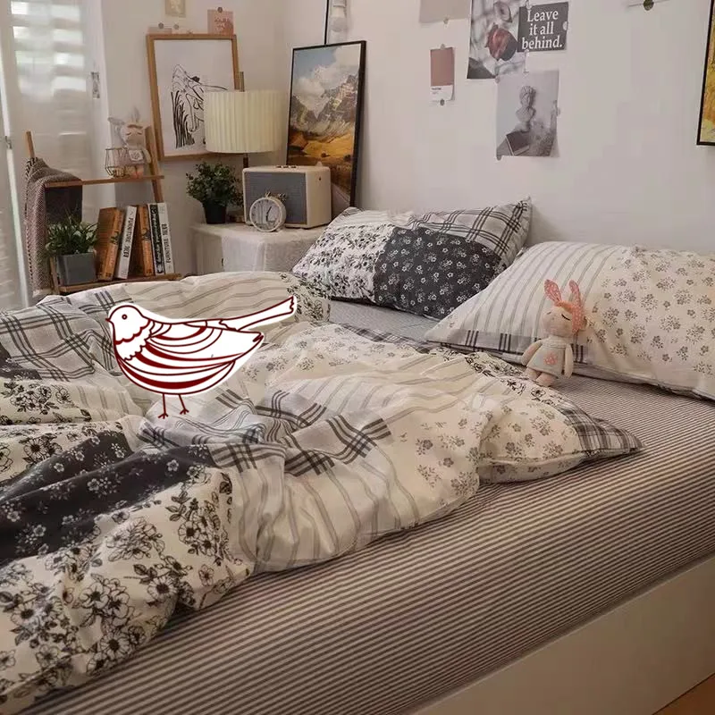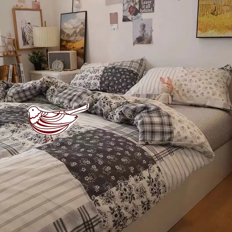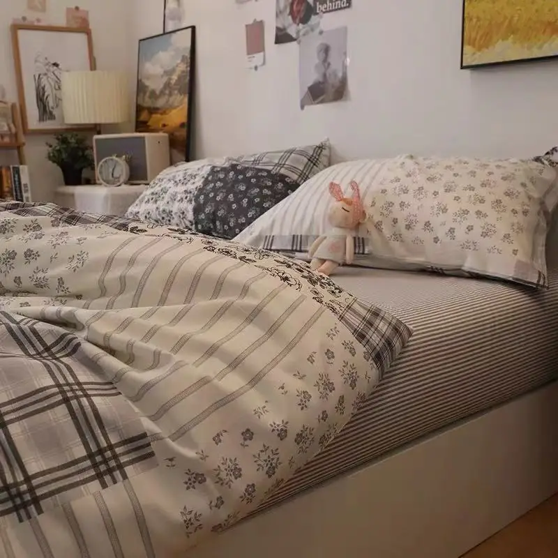 Купить Simple Grid Rural Bed On The Four - Piece Set Of Pure Cotton Cotton Sheet Bed за 5800рублей