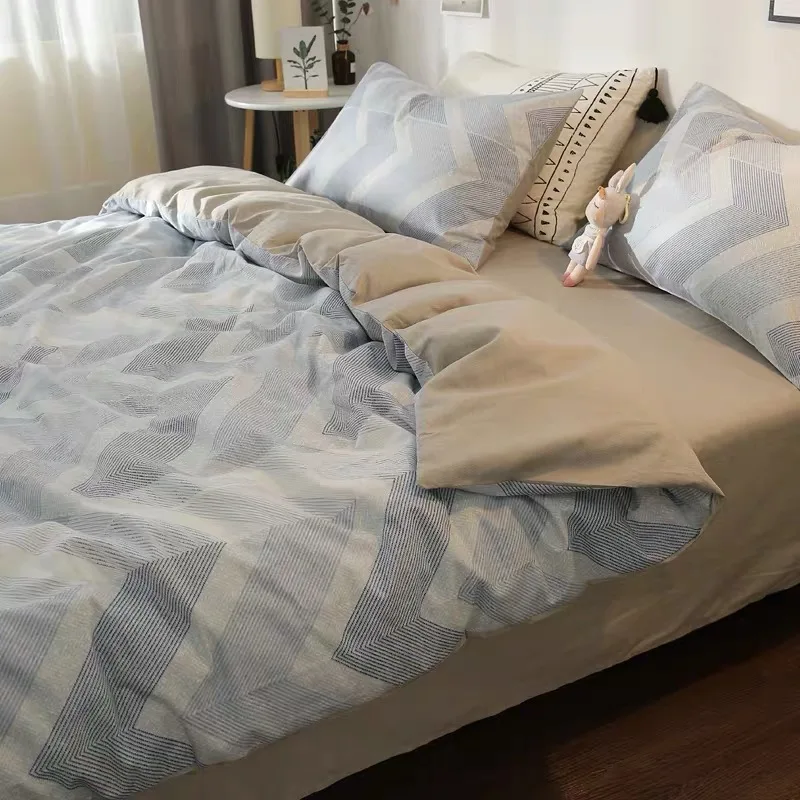 Купить Simple Stripe Three Piece Set Of Single Double Dormitory Student Bed Sheet Cover Cotton Bed Four Piece Set за 3000рублей