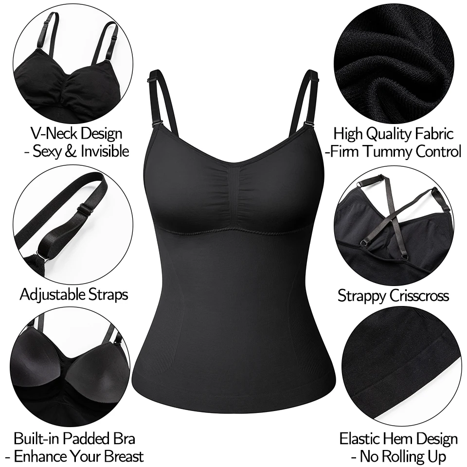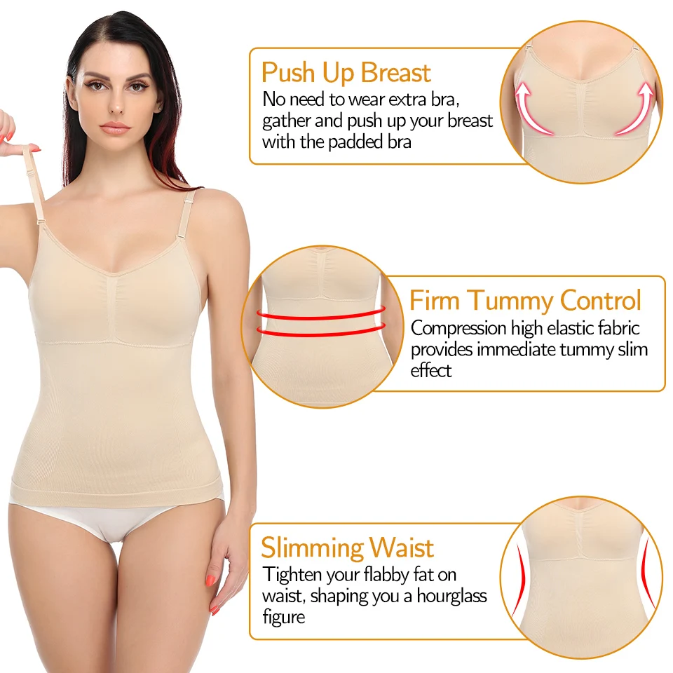 Купить Slimming Shapewear Camisole for Women Tummy Control Built in Bra Tank Top with Adjustable Spaghetti Strap Compression Vest Cami за 450рублей