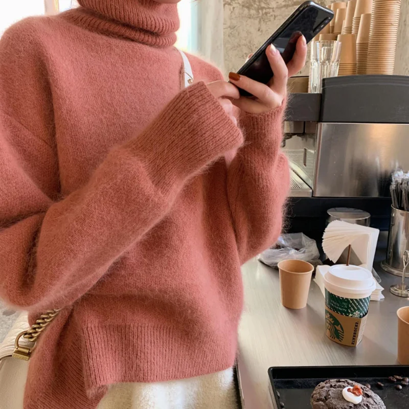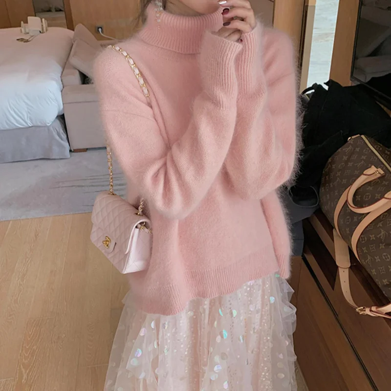 Купить Slouchy Turtleneck Sweater Women Autumn and Winter 2022 new Loose Wear Soft Waxy Pullover Sweater Korean Thickened Base Coat за 900рублей
