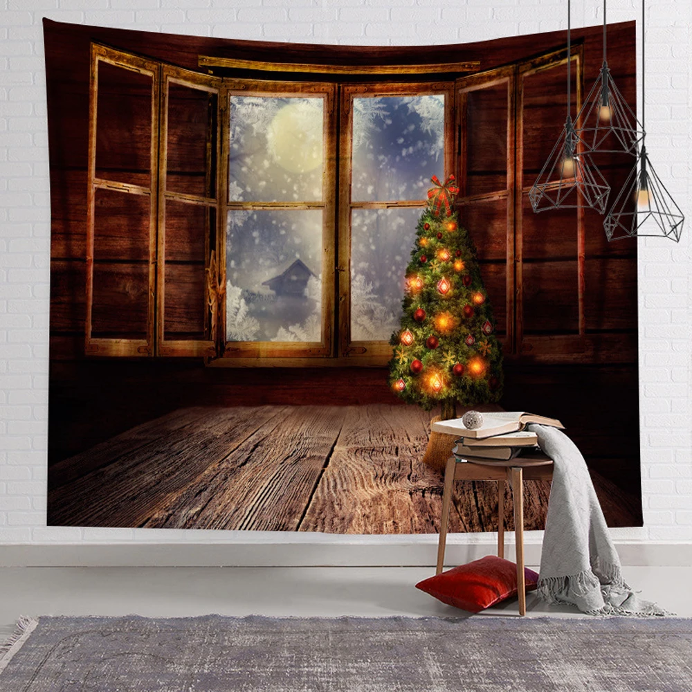 Купить Snow and Fir Tree Leaves Christmas Tapestry Charcoal Candle Winter Scene Tapestries Bedroom Living Room Dorm Decor Wall Hanging за 550рублей