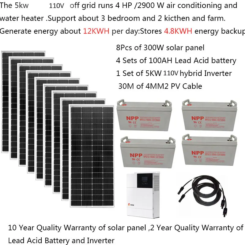 Купить Solar Panel Kit Complete 5000W 5KW 220v 110V Pure Sine Wave MPPT Hybrid Inverter Battery Off Grid System Car Farm House Pool RV за 190000рублей