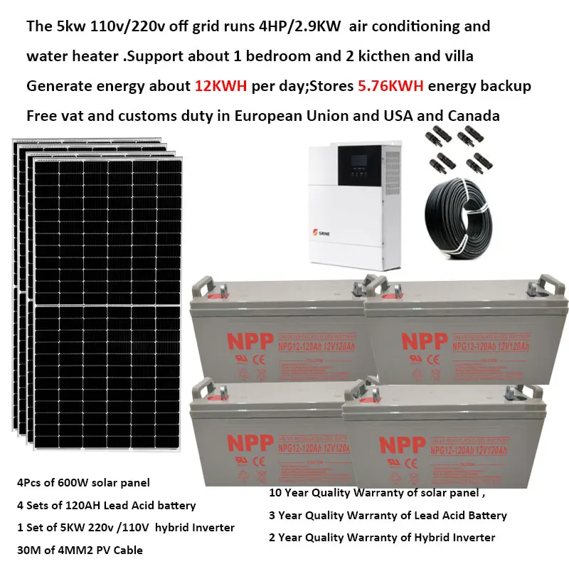 Купить Solar Panel Kit Complete With Battery 5000W 220V 110V Solar Panel 400W500W 600W UPS Hybrid Inverter Off Grid System Car Caravan за 200000рублей