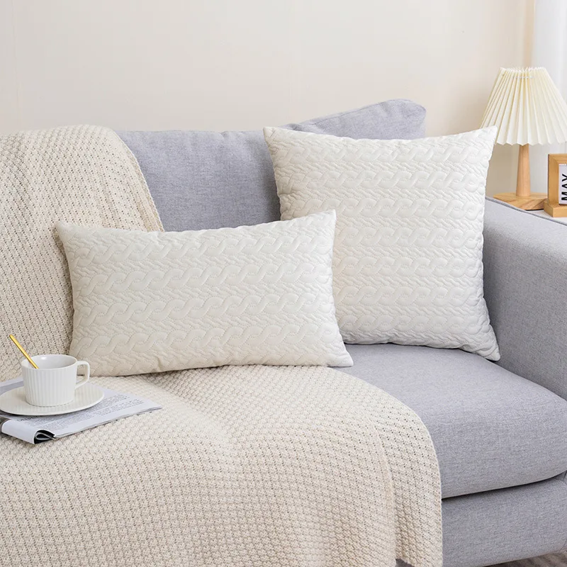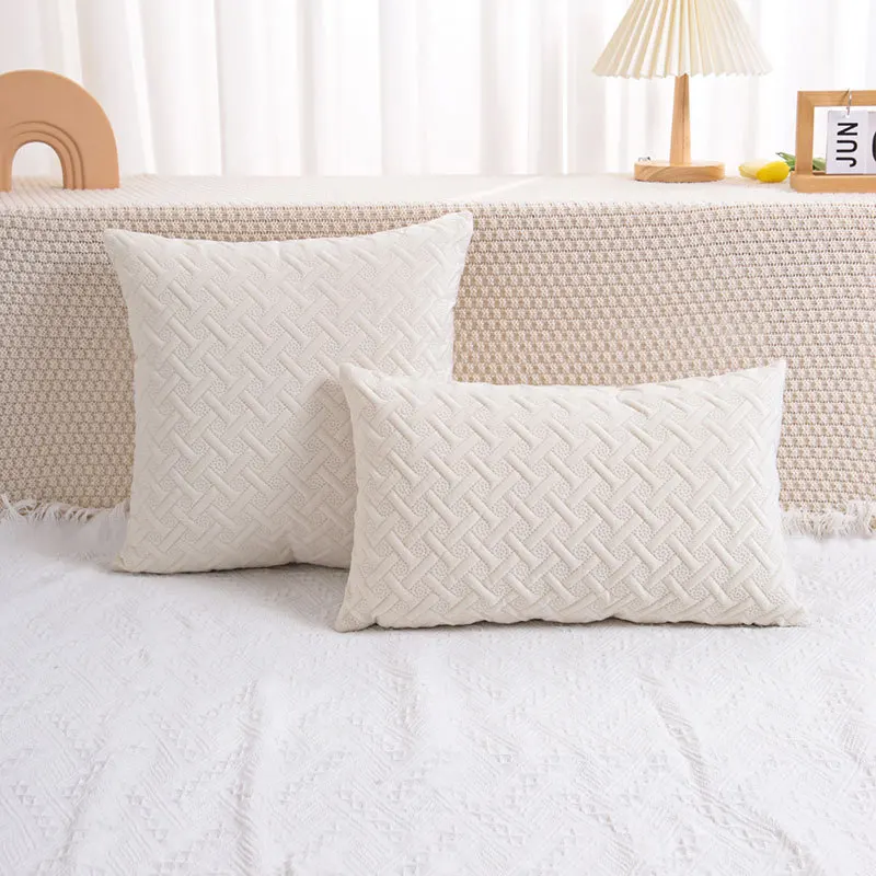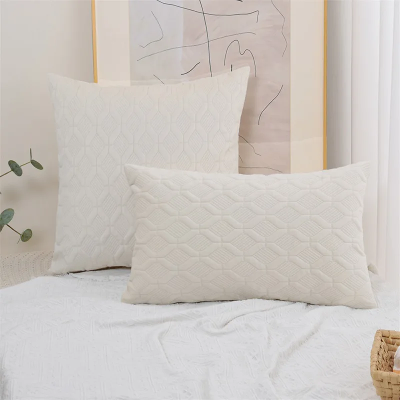 Купить Solid Color Geometric Embossed Quilted Cushion Cover 50*50 Beige Grey Decorative Pillow Cover for Sofa Autumn Decoration за 400рублей