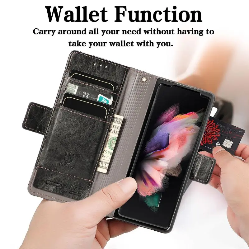 Купить Solid Color Leather Card Wallet Phone Case For Samsung Galaxy Z Fold 4 3 Shockproof Anti-Drop Magnetic Holder Flip Cover за 350рублей