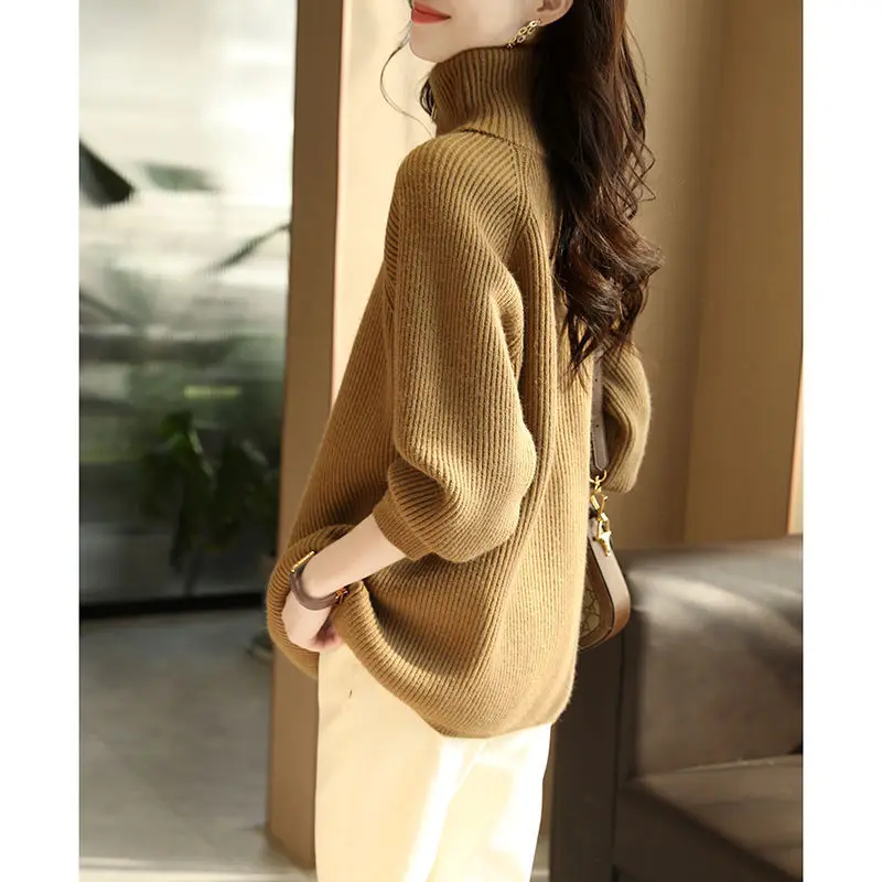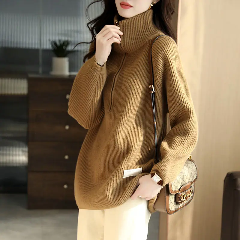 Купить Solid Color Woolen Knitted Sweater Half Open Zipper Pullover Turtleneck Women's Mid-length Sweater Pullover 2022 Spring Autumn за 1450рублей
