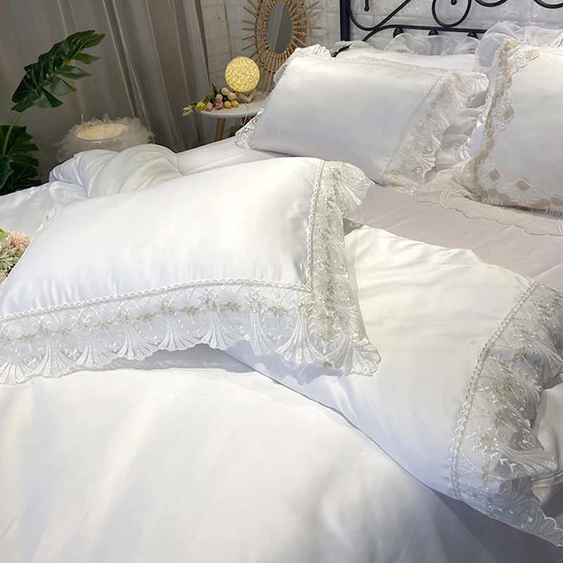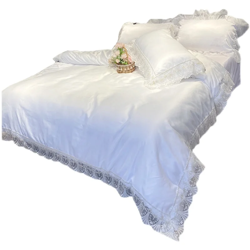 Купить Solid color princess wind ice silk four-piece bed sheet quilt cover summer cool and comfortable comforter bedding sets за 6750рублей
