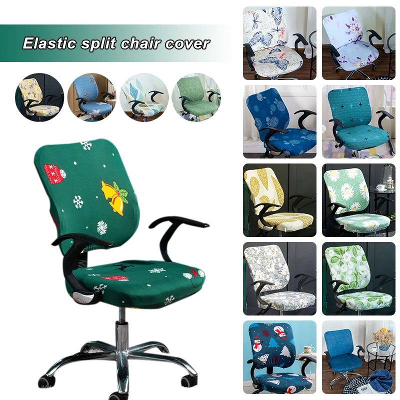 Купить Split Office Computer Chair Covers Stretch Swivel Slipcover Xmas Printed Seat Cover Anti-dirty Rotating Gaming Desk Slipcover за 400рублей