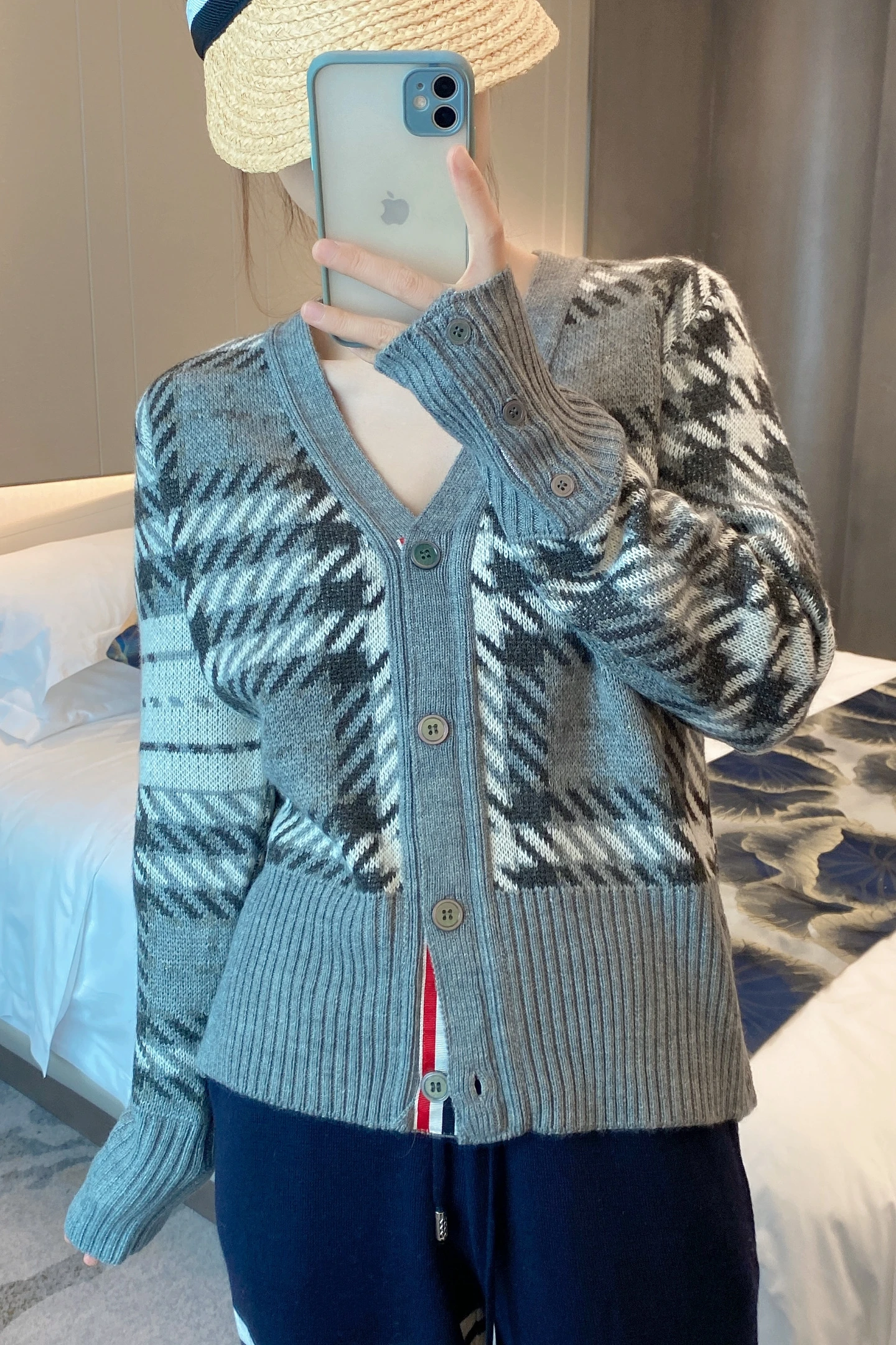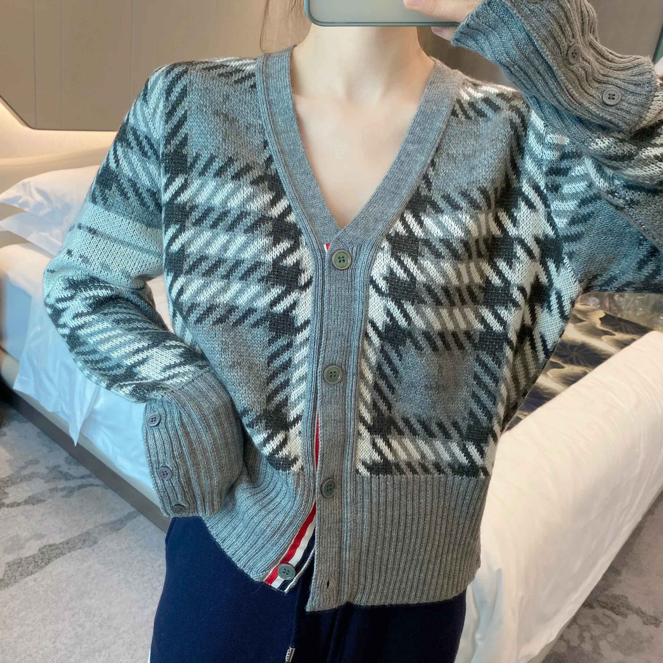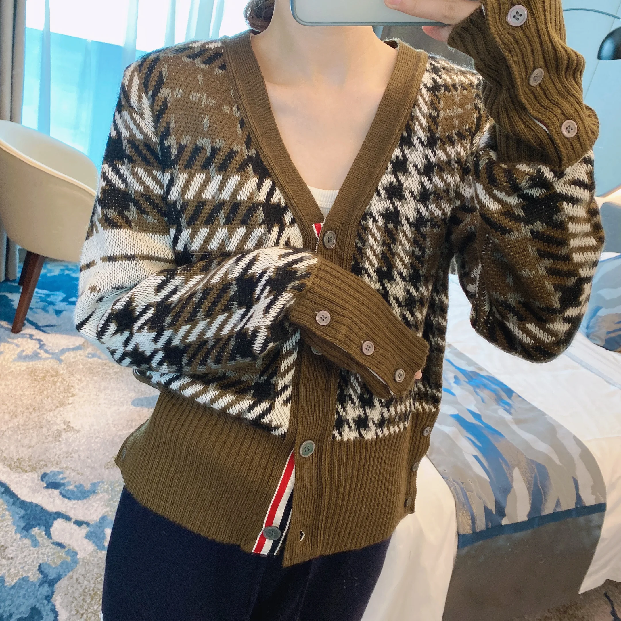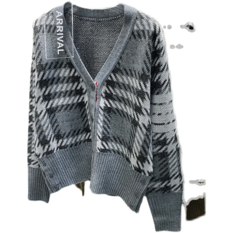 Купить Spot 2022 autumn and winter models TB houndstooth wool knitted cardigan women's slim V-neck four-bar long-sleeved jacket tide за 1850рублей