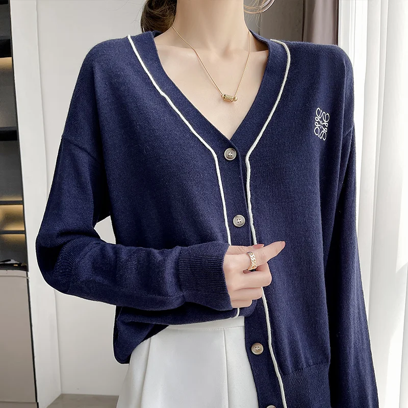Купить Spring And Summer V-Neck Cashmere Knitted Cardigan Thin Women's Loose And Wool Short Versatile Color Matching за 1500рублей