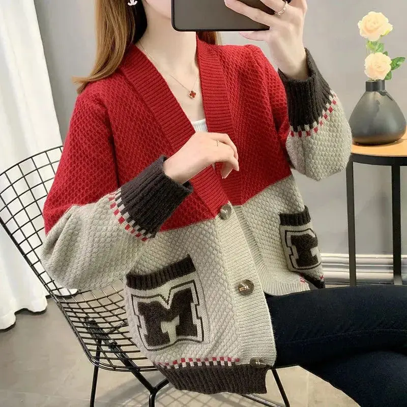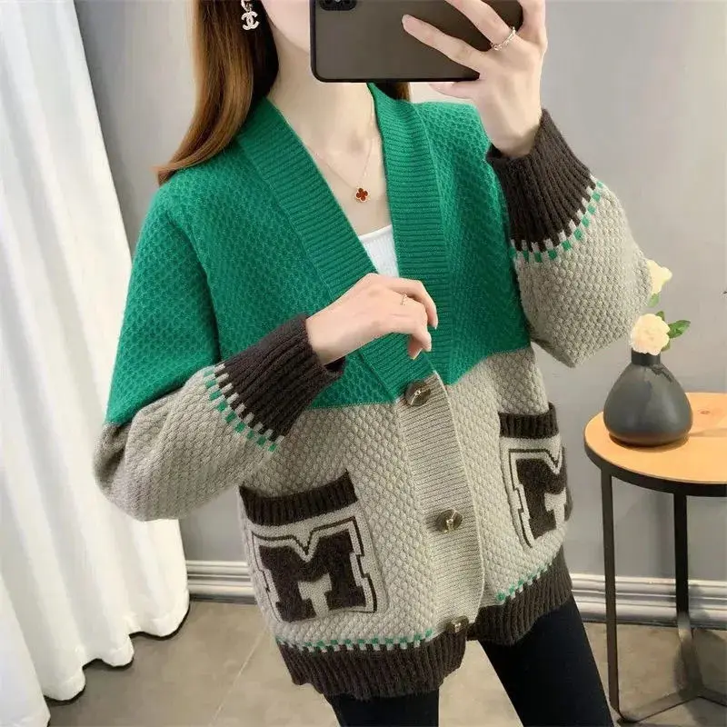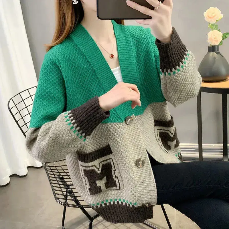 Купить Spring Autumn Design Casual Letter Pockets Splicing Knitted Cardigan Sweaters for Women 2022 New Single Breasted Chic Coat Tops за 850рублей