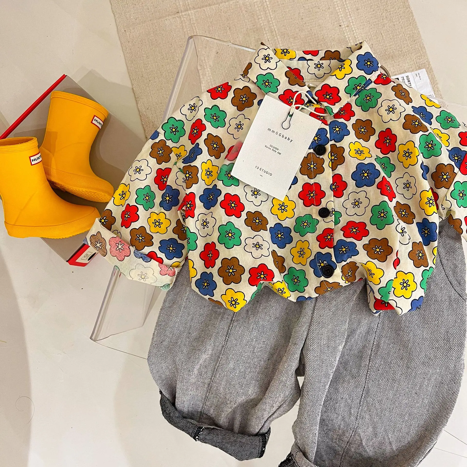 Купить Spring Autumn New Children Shirts Fashion Flower Print Girls Shirts Baby Long Sleeve T Shirt Boys Lapel Shirts Cute Kids Clothes за 750рублей