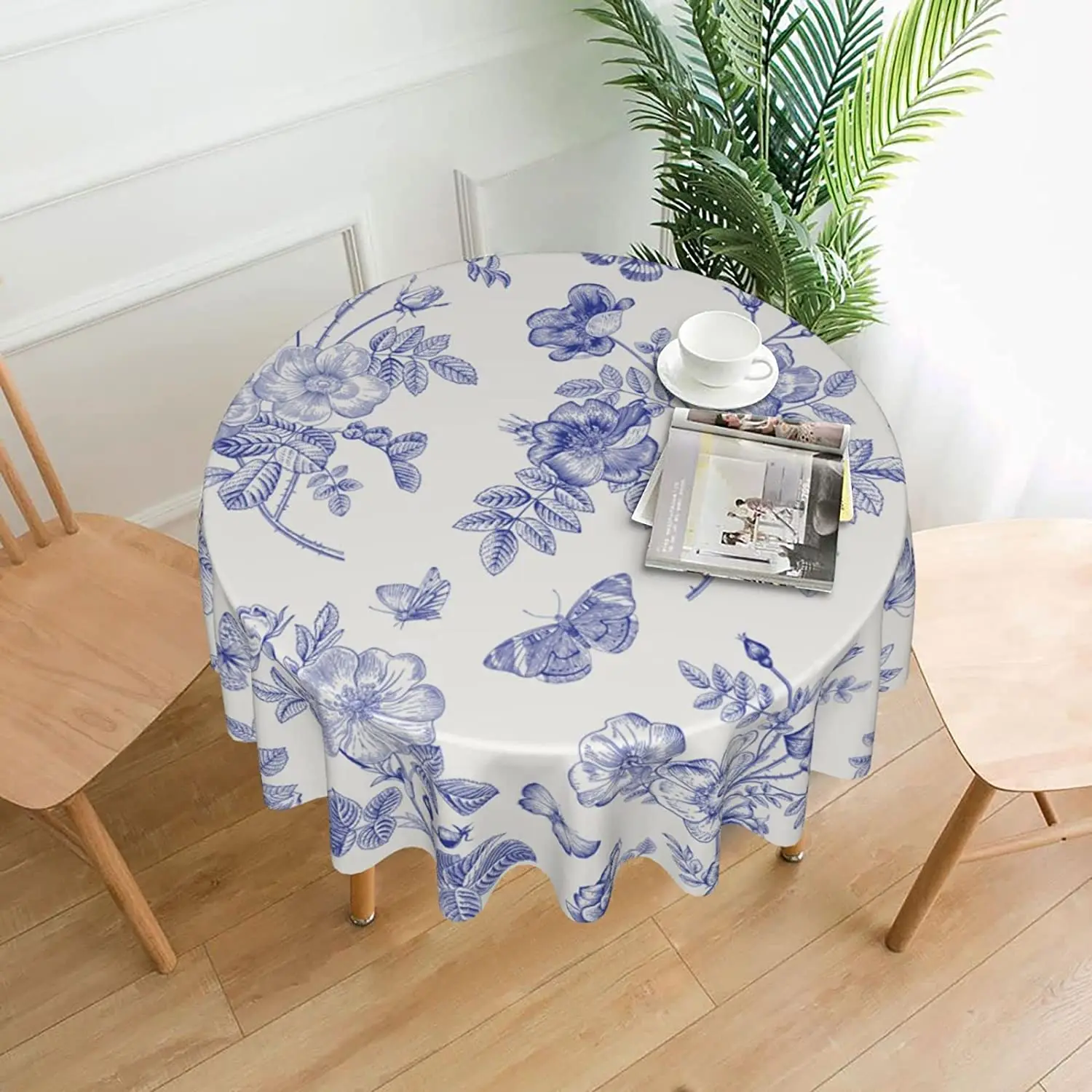 Купить Spring Flower Tablecloth Round 60 Inch Blue White Table Cloth Waterproof Fabric Farmhouse Floral Butterfly Tablecloths Decor за 400рублей