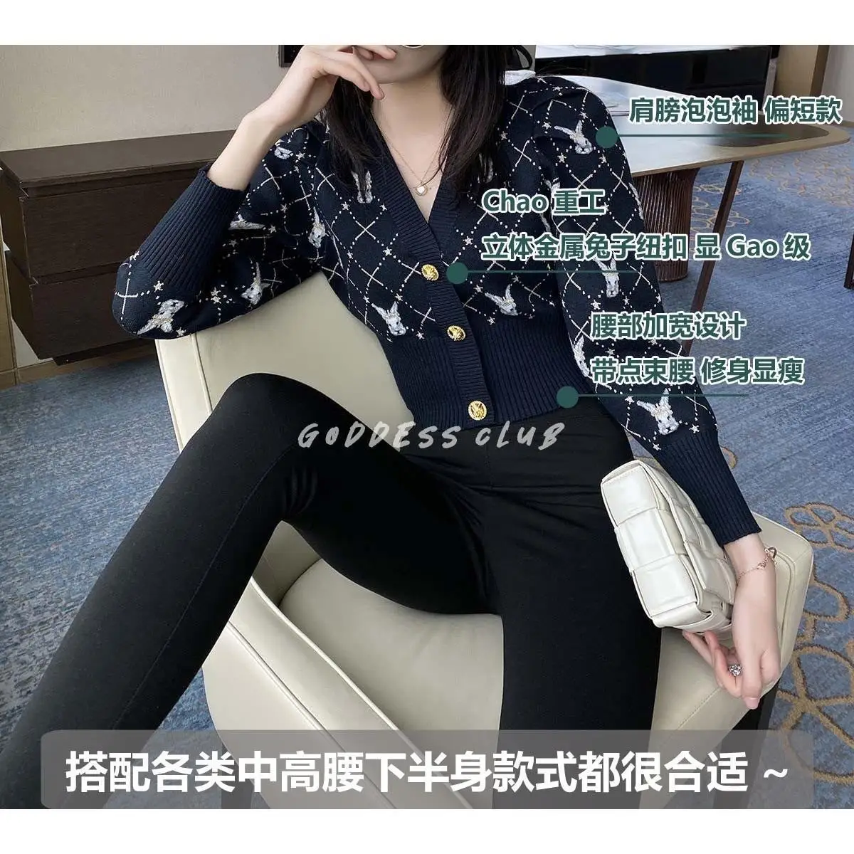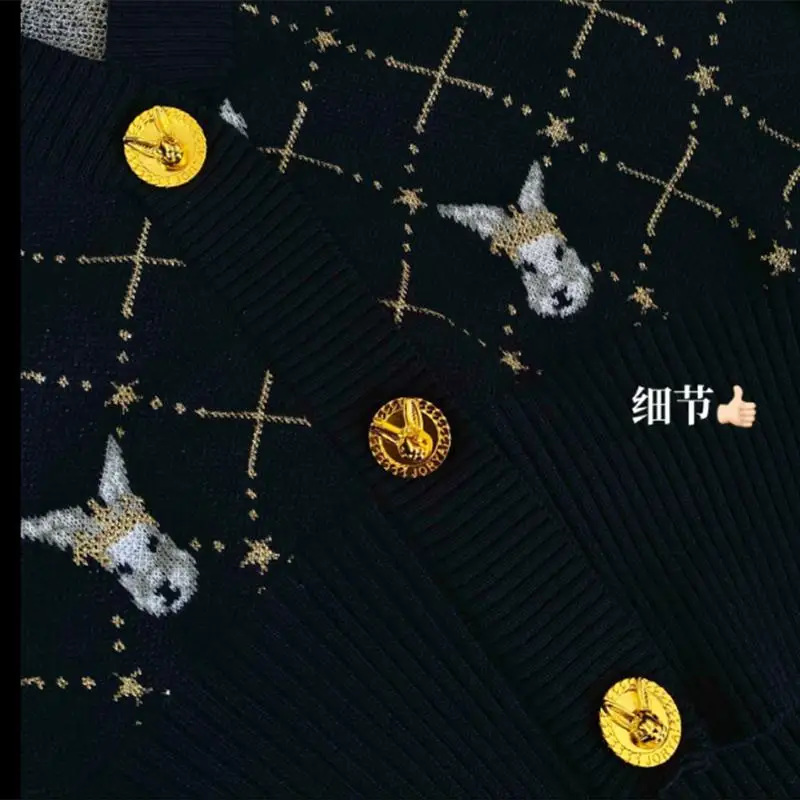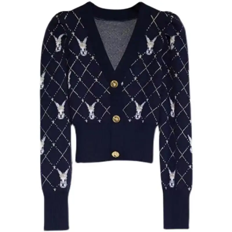 Купить Spring New Women's Cartoon Rabbit Knitted Cardigan V-neck Sweater Cardigan Small Fragrance Style Short High Waisted Women за 1050рублей
