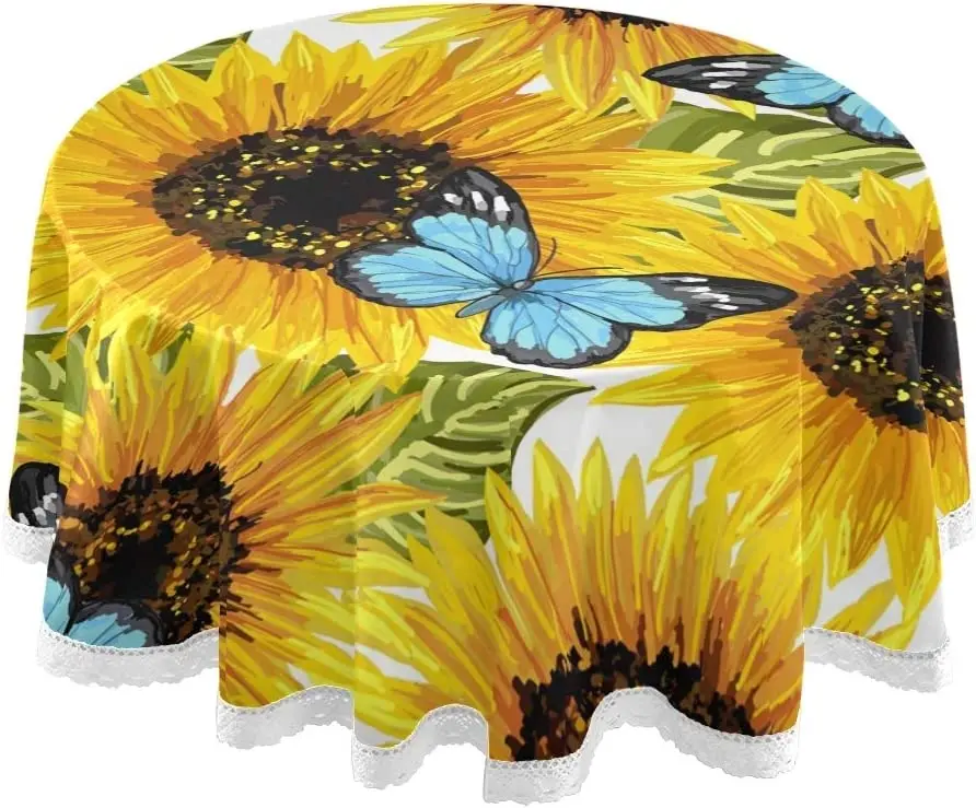Купить Spring Sunflower Tablecloth Round 60 Inch Table Cover Macrame Lace Butterfly Outdoor Indoor Table Cloth Washable Tabletop Decor за 400рублей