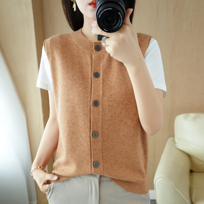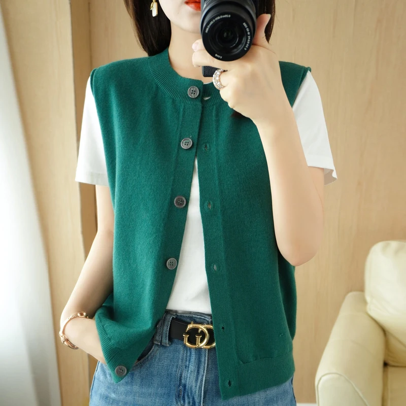 Купить Spring and Autumn 2022 New Sleeveless Knitted Vest Cardigan Women's Outerwear Sweater Short Solid Versatile Top Vest за 700рублей