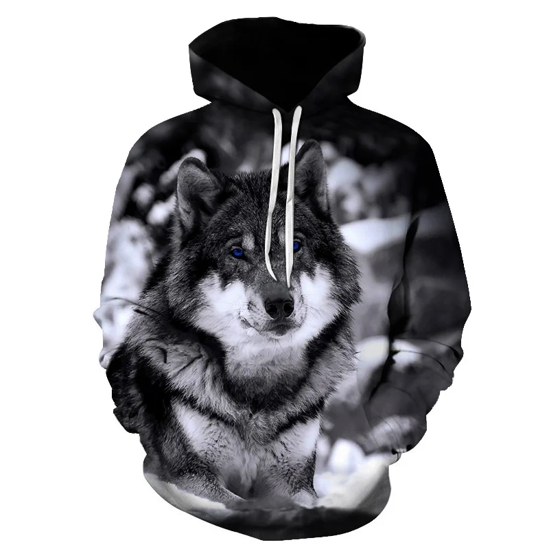 Купить Spring and Autumn Men's Junior Wolf Hoodie Fashion 3D Wolf Printing Loose Streetwear 2022 Funny Animal Street Hip Hop Sweatshirt за 1100рублей