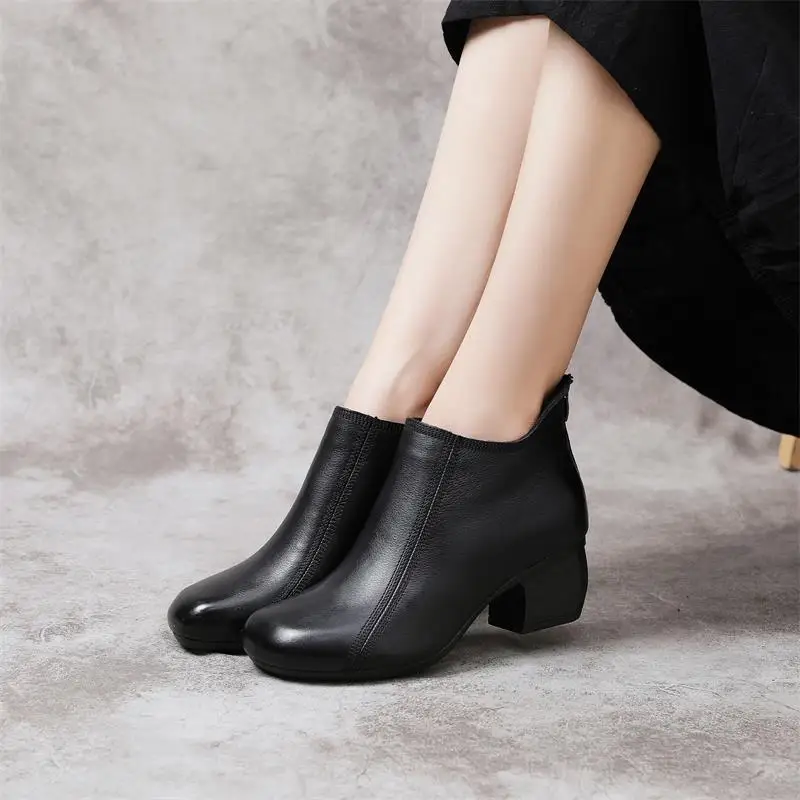 Купить Spring and Autumn New Fashion Style Retro Leather Ladies Boots Mid-heel Soft Cowhide Thick Leather Rubbed Color Leather Boots за 3750рублей