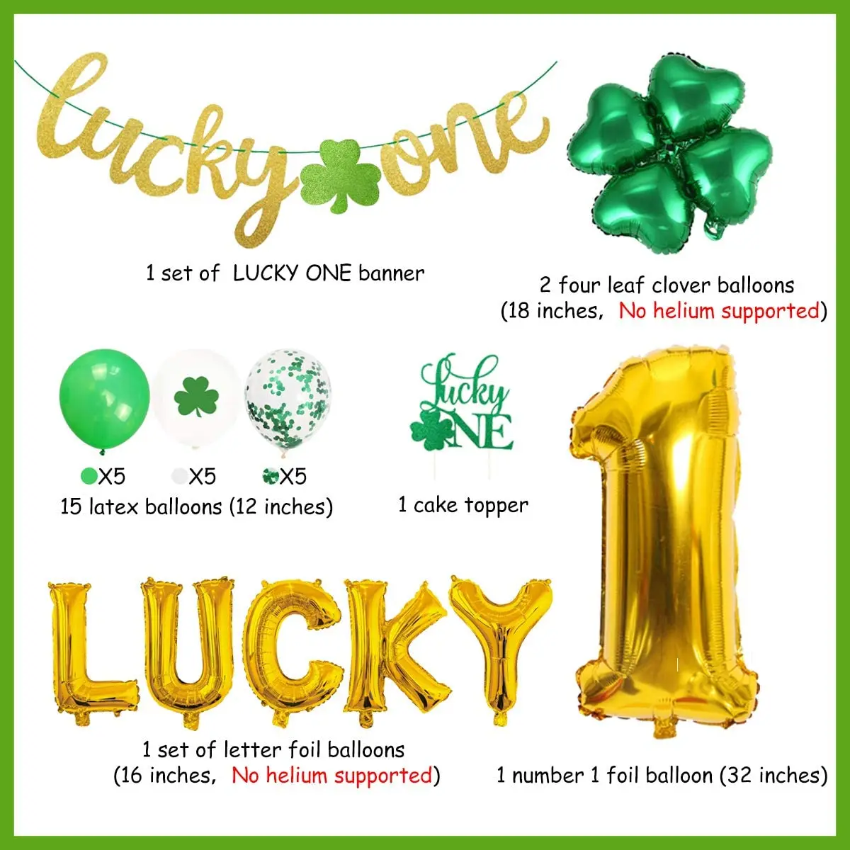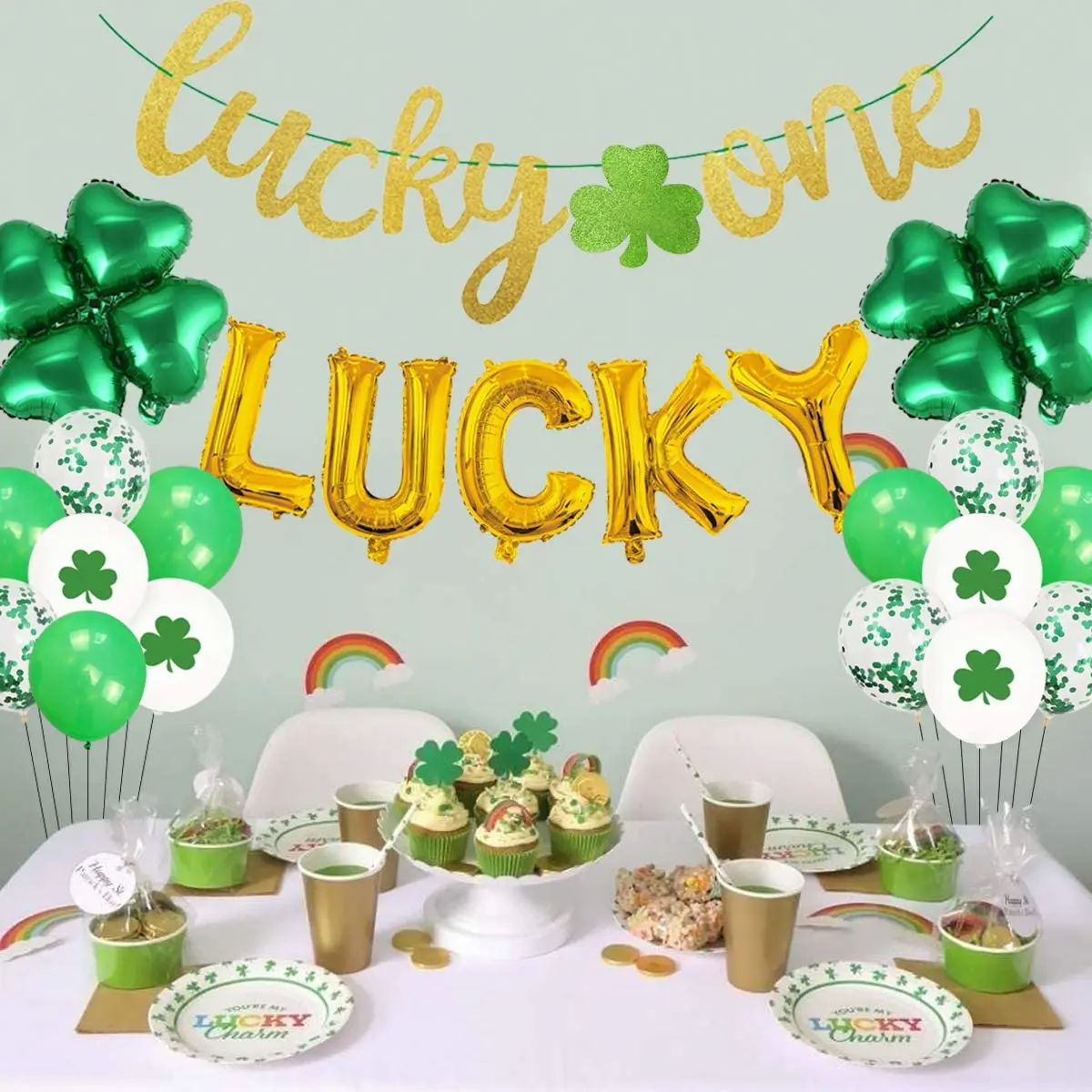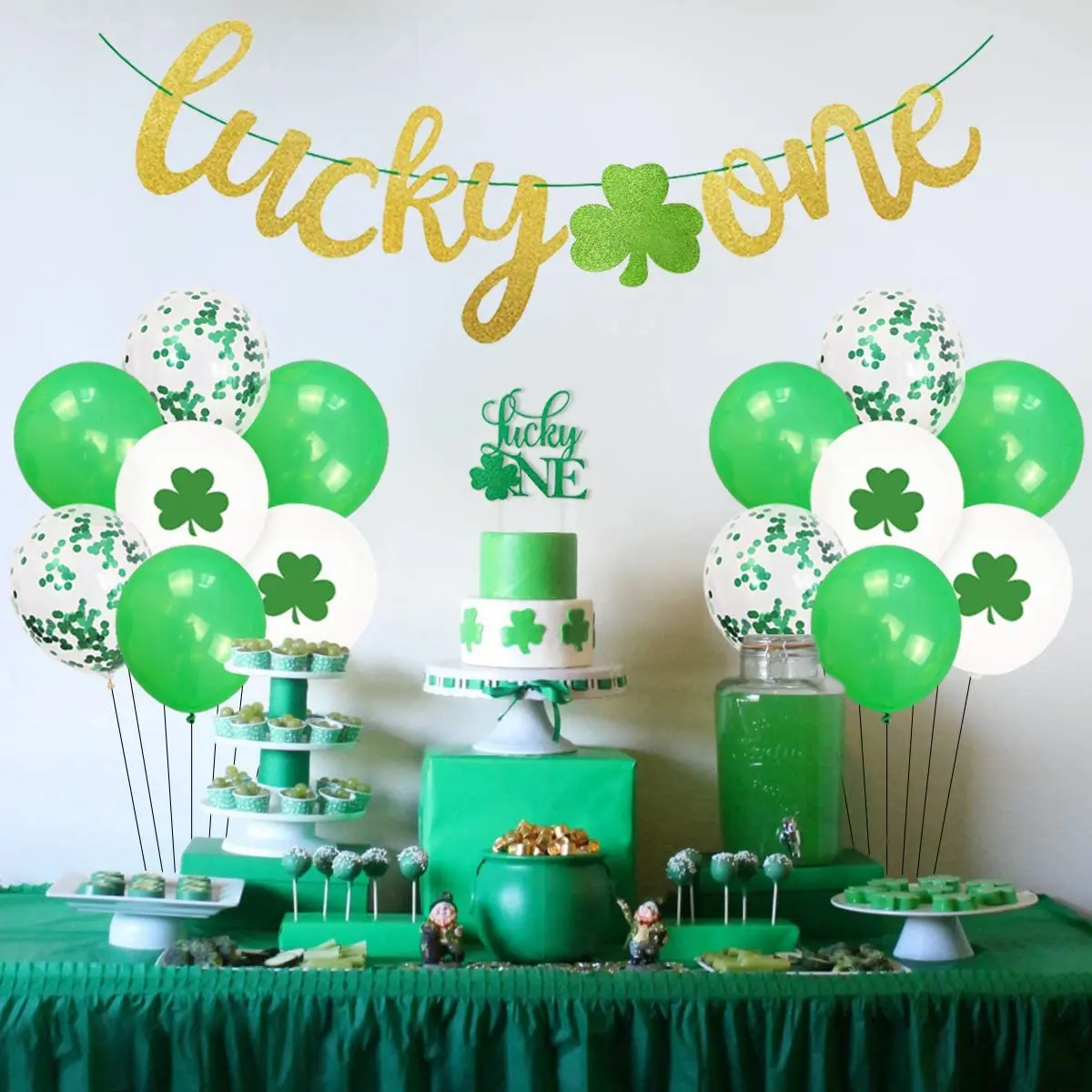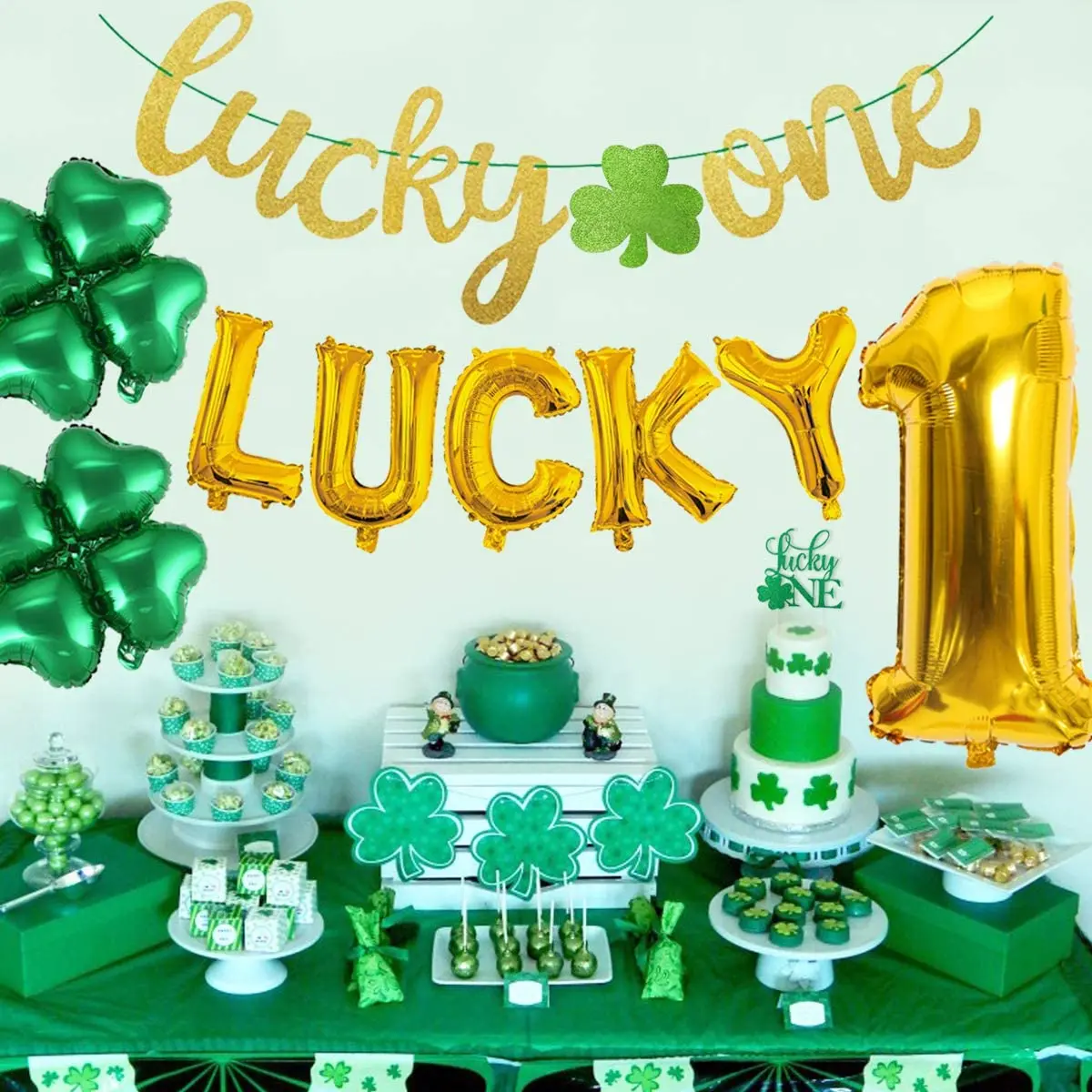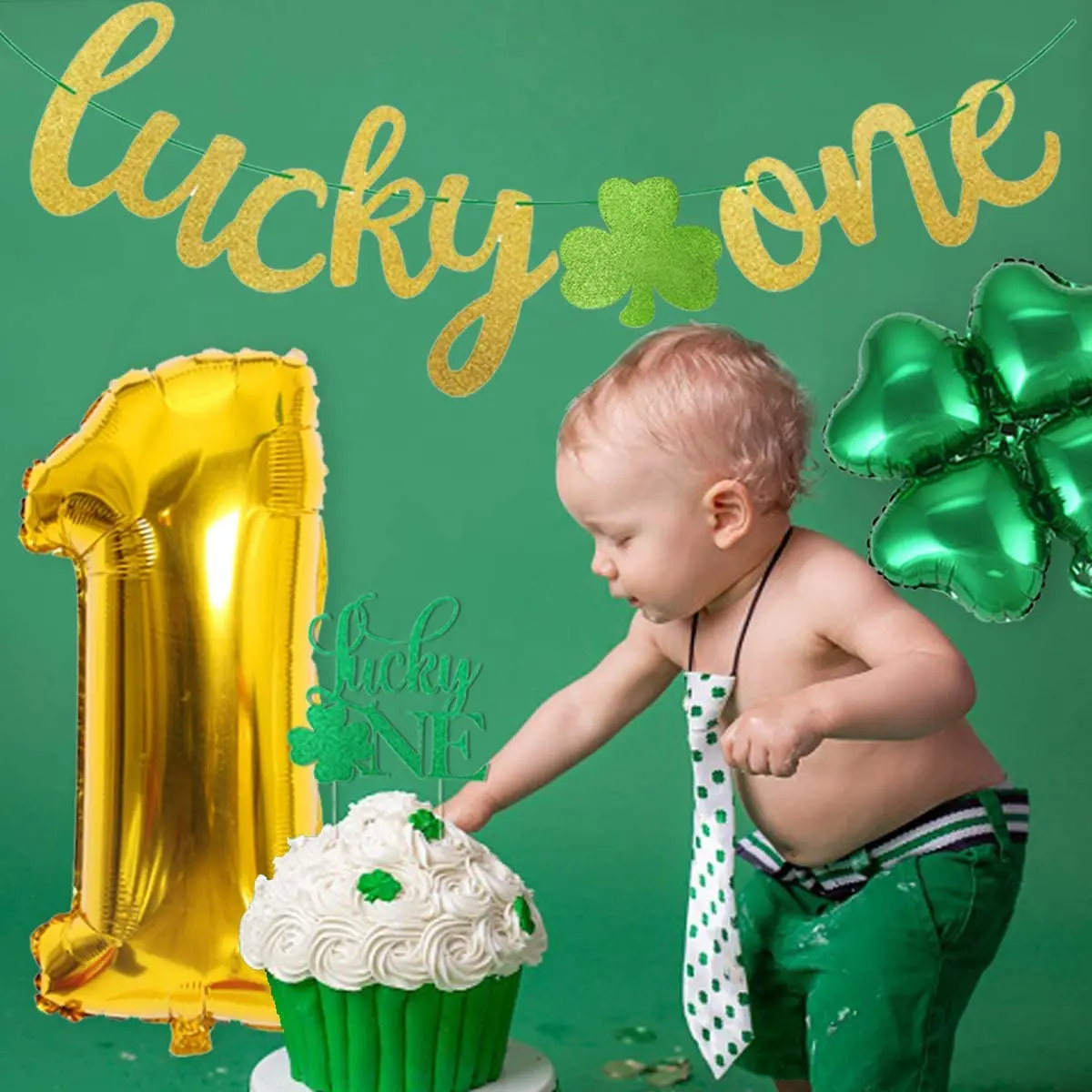 Купить St. Patrick's Day Themed 1st Birthday Party Decorations Kit CakeTopper Shamrock Irish First Birthday Party Supplies for Boy Girl за 550рублей
