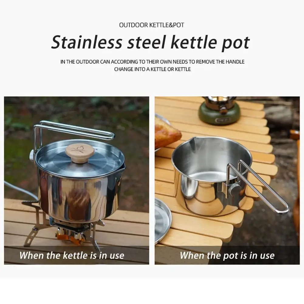 Купить Stainless Steel Outdoor Camping Kettle Pot 1L Ultralight Hiking Picnic Coffee Cooking Teapot With Foldable Handle Lid Cookware за 700рублей