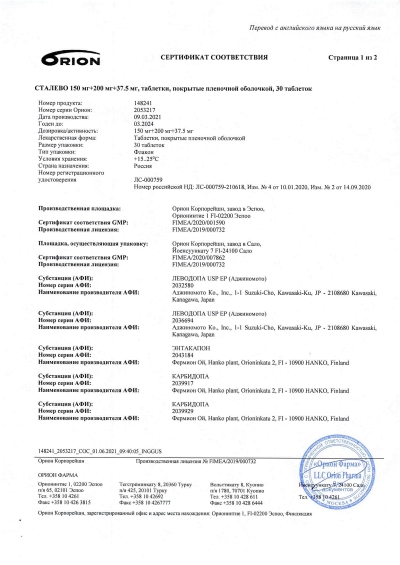 Купить СТАЛЕВО 0,1+0,2+0,025 N30 ТАБЛ П/ПЛЕН/ОБОЛОЧ по цене 3489 .60 руб . в интернет аптеке в Самаре . . .