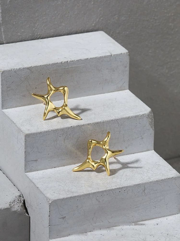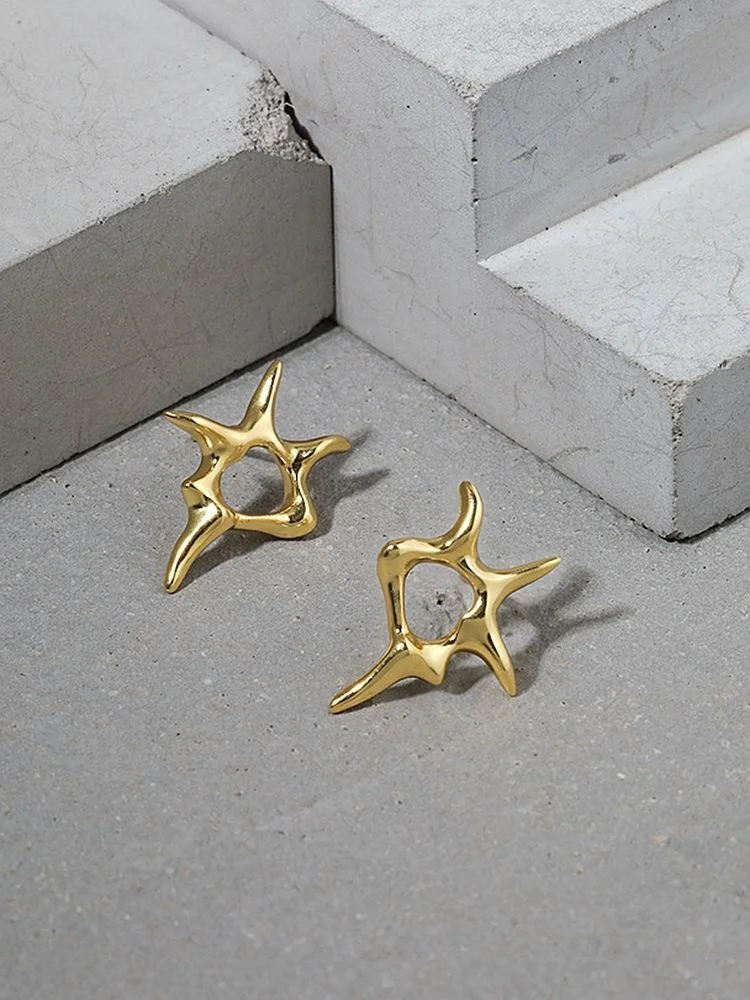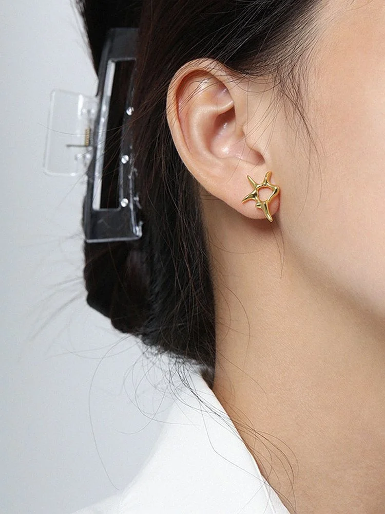 Купить Sterling Silver 925 Stud Earrings For Women's Gold Irregular Design Minimalist Fine Jewellery Accessories Unusual Aros Jewelry за 500рублей