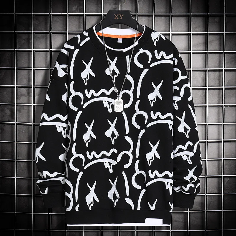 Купить Street Sweater Men's 2022 Spring Youth Creative Funny Printing Handsome Leisure Round Neck Sweater Hip Hop Sweatshirt for Men за 1250рублей